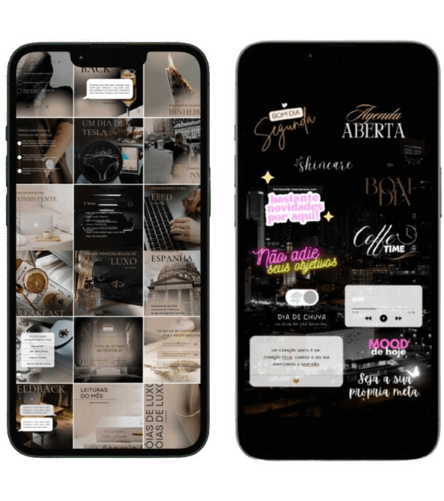 Tenha um feed profissional com posts prontos em menos de 1 minuto e atraia clientes todos os dias mostrando autoridade e valor no seu perfil. São + de 350 artes prontas 100% editáveis no Canva gratuito com 8 temas diferentes e um pacote de + de 5.000 figurinhas premium elegantes para se destacar nos stories.