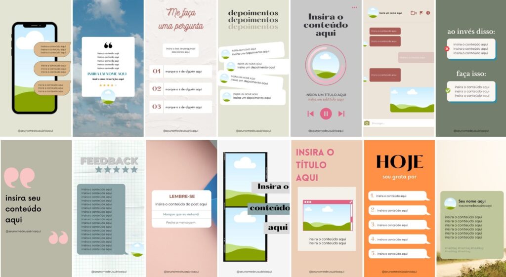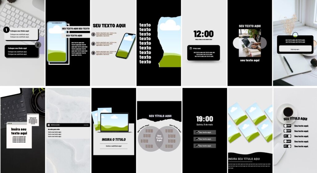 Mais de 400 modelos de stories profissionais e 100% editáveis para deixar o design do feed alinhado com os stories.